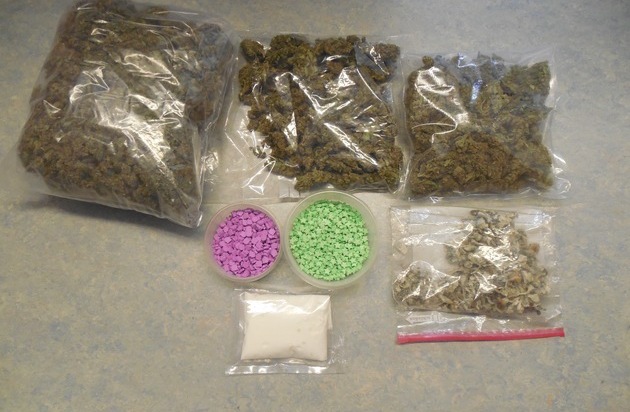 Amphetamin, ca. 0,415 Kg, Marihuana ca. 1,024 Kg, Haluzinogene Pilze ca. 0,087 Kg und ca. 933 Ecstasy-Tabletten
