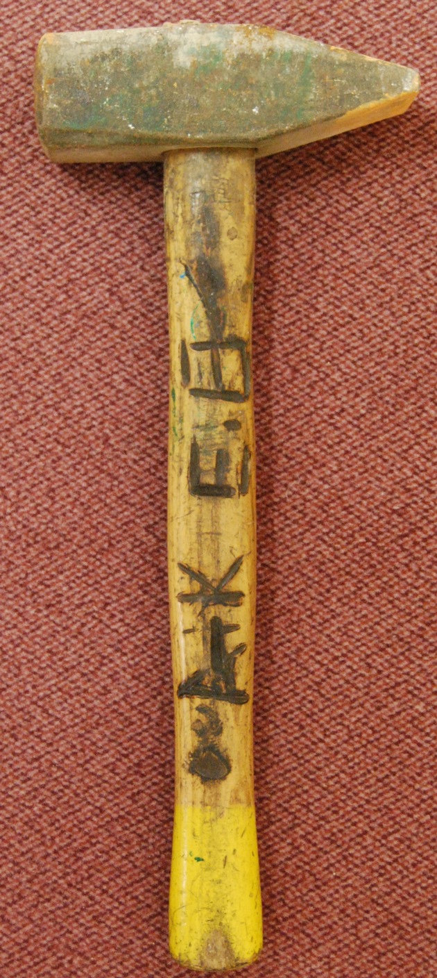 Am 09.11.2017 wurde in den frühen Morgenstunden ein Einbruch in eine Spielothek in Wülfingen durch bislang noch unbekannte Täter begangen. Bei der Tatortaufnahme wurden eine silberne Aluleiter und 2 Vorschlaghammer aufgefunden, die bislang noch nicht zugeordnet werden konnten. Ein Hammer ist am Stiel beidseitig graviert mit den Intitalien oder Buchstaben M-E AMI und A-K E. (siehe Foto) Wer sachdienliche Hinweise auf den Besitzer oder deren Herkunft geben kann, wird gebeten sich mit dem Polizeikommissariat Elze, Tel.: 05068-93030, in Verbindung zu setzen.