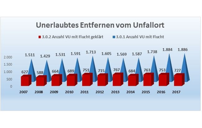 Als weiterer Schwerpunkt der polizeilichen Verkehrssicherheitsarbeit hat sich die fortlaufend hohe Zahl der Verkehrsunfallfluchten herauskristallisiert. Der Gesetzgeber hat dem Schutz der Geschädigten eine hohe Bedeutung zugemessen und das "Unerlaubte Entfernen vom Unfallort" in § 142 StGB als Straftat festgeschrieben. Als Unfallflüchtiger gilt danach jede Person, die zum Unfallgeschehen beigetragen hat und sich, ohne die Feststellung der Art ihrer Unfallbeteiligung und der Angaben zur Person zu ermöglichen, von der Unfallstelle entfernt. Der Begriff des Unfallbeteiligten ist weit gefasst: Auch der Fußgänger, der mit seinem Einkaufswagen einen geparkten Pkw touchiert, ist ein unfallbeteiligter Verkehrsteilnehmer. Die Polizei Hildesheim hat sich der landesweiten Initiative "Rummss!!!" angeschlossen und leistet im Rahmen vielfältiger Aktionen intensive Aufklärungsarbeit mit Blick auf die Folgen einer Unfallflucht; Zeugen einer Unfallflucht werden gebeten, die Ermittlungsarbeit der Polizei zu unterstützen und ihre Beobachtungen über die Notrufnummer 110 zeitnah mitzuteilen.