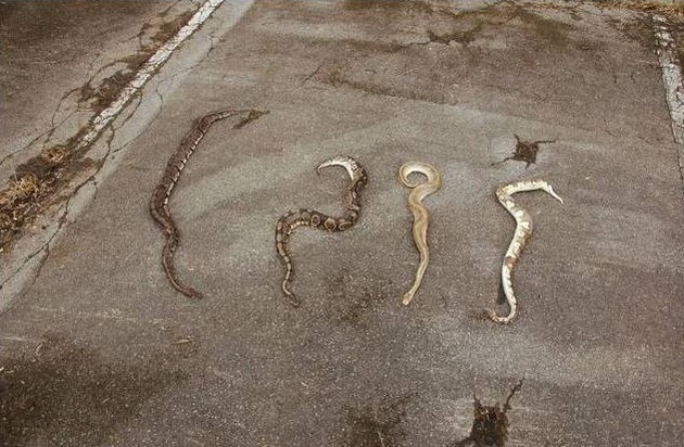 kri.Am Freitag, den 23.03.2018 gegen Mittag wurden auf dem Parkplatz des Robert-Bosch-Werkes in Hildesheim Neuhof vier Schlangen ausgesetzt und der kalten Witterung überlassen. Bei den Schlangen handelt es sich augenscheinlich um Würgeschlangen mit einer Größe von 0,80 bis 1,20 m.