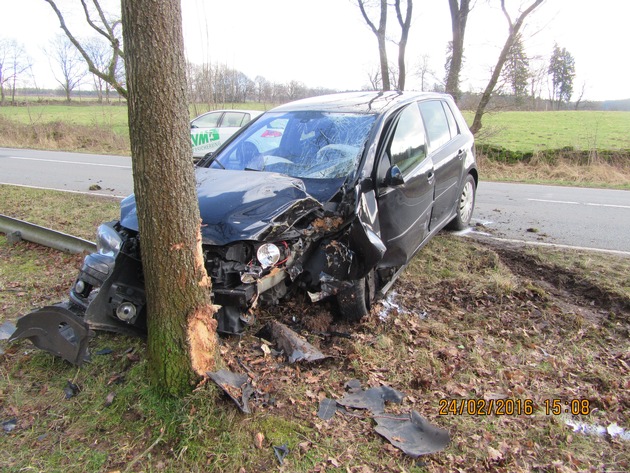 POL-HOL: Landesstraße 549; Neuhaus Richtung Silberborn: Nach Überholvorgang am Baum gelandet - Fahrer leicht verletzt -