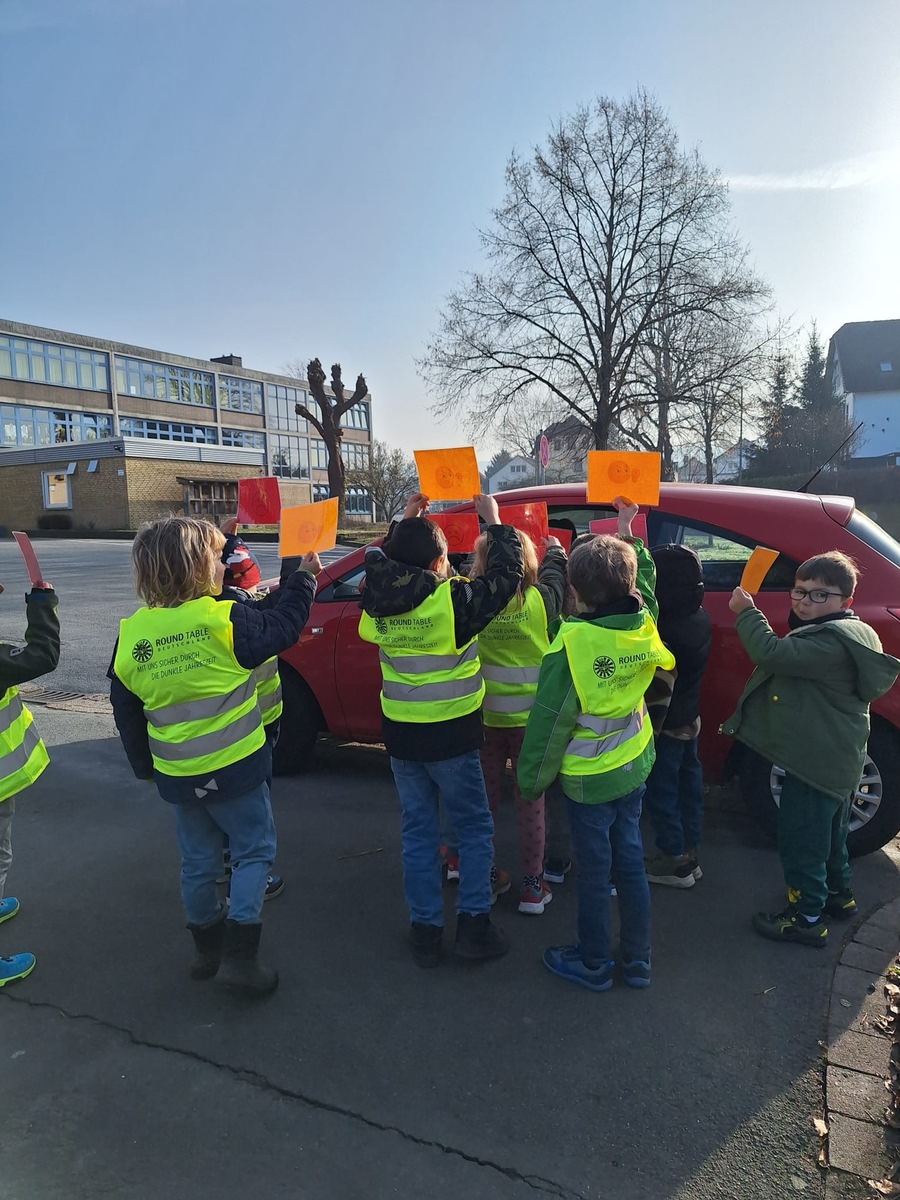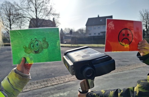 Unterstützt wurden die Polizeibeamtinnen und Polizeibeamten von Kindergartenkindern, die im Vorfeld Schilder mit lachenden und weinenden Smileys gestaltet hatten. Mit grünen und roten Tafeln gaben sie den Verkehrsteilnehmenden eine direkte Rückmeldung zu deren Fahrweise. Regelkonformes Fahren wurde positiv signalisiert, überhöhte Geschwindigkeit entsprechend sichtbar gemacht.
