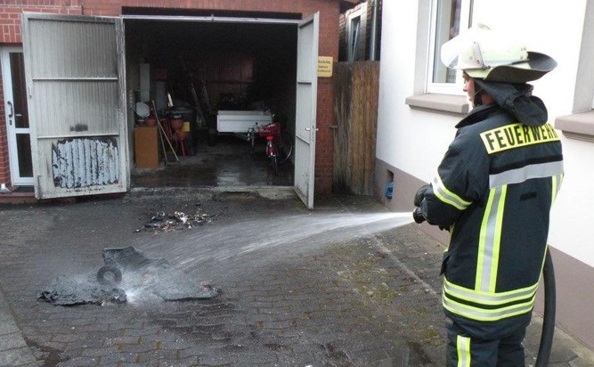 STEYERBERG (mie) - Am Freitag, 1. Maifeiertag 15, gerieten kurz vor 20.00 Uhr, in der Kirchstraße in einer Garage zwei Mülltonnen in Brand. Durch den Hauseigentümer konnte das Feuer teilweise gelöscht werden. Die Feuerwehr Steyerberg, die mit 15 Kräften vor Ort war, löschte die Flammen anschließend gänzlich ab.