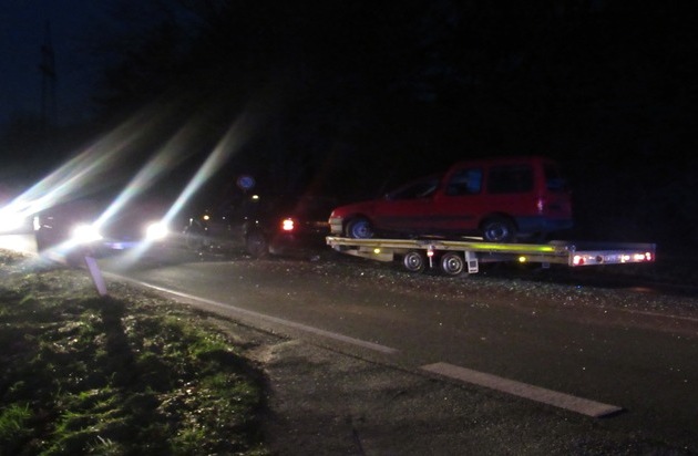 (BER)Am Dienstagnachmittag, 09.01.2018, gegen 17.00 Uhr ereignete sich auf dem Kräher Weg in Nienburg ein Verkehrsunfall, bei dem zwei Personen verletzt und in die Helios - Klinik gebracht wurden. Nach den Ermittlungen der Polizei war ein 41-jähriger Mann aus dem Kreis Lüneburg mit seinem Toyota und Pkw-Anhänger auf der bevorrechtigten Kreisstraße 3 (Kräher Weg) in Richtung Nienburg unterwegs, als ein 78-jähriger Nienburger mit seinem Nissan aus dem Langen Moorweg auf die Kreisstraße einbiegen wollte. Dabei hatte er vermutlich den Pkw des Lüneburgers übersehen und es kam zum Zusammenstoß. Der SUV aus dem Langen Moorweg landete nach dem Zusammenprall auf einer an der K3 liegenden Wiese. Das Gespann aus Lüneburg musste abgeschleppt werden. Der Fahrer des Nissan sowie sein Beifahrer wurden verletzt in das Krankenhaus Nienburg eingeliefert.