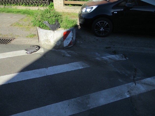 (BER)Am Montagmorgen, 07.05.2018, gegen 08.26 Uhr befuhr eine 81-jährige Nienburgerin die Straße Am Drosch. In der 30er - Zone verlor sie vermutlich die Kontrolle über ihren Pkw, prallte gegen einen bepflanzten Blümenkübel und schob diesen noch ca. 30 Meter vor sich her. Verletzt wurde bei dem Verkehrsunfall niemand. Glück im Unglück - wenige Zentimeter vor einem dort geparkten weiteren Fahrzeug kam sie zum Stehen. Bei dem Aufprall wurde der Opel der Verursacherin stark beschädigt. Die 30 Meter nach dem Aufprall legte sich auf einer Felge zurück, nachdem der Reifen geplatzt war.