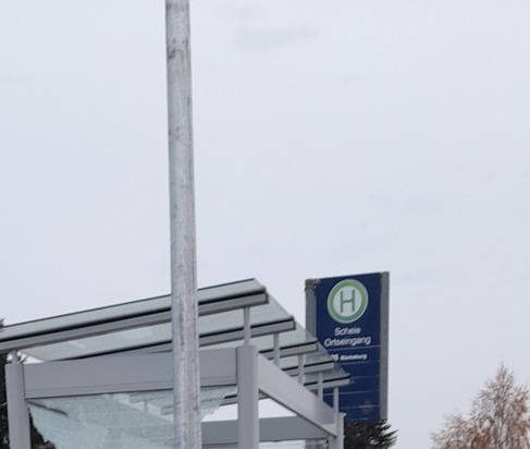 Traurige Mitteilung für alle Busfahrende, die regelmäßig in Bückeburg von Scheie bzw. Am Weinberg den öffentlichen Personennahverkehr nutzen. Die beiden in Scheie erst kürzlich neu errichteten Buswartehäuschen und das Pendant Am Weinberg sind in der Nacht zu heute von Vandalen entglast worden. Übergangsweise muss man sich also als Fahrgast auf ein zugiges Warten im nasskalten November einstellen.