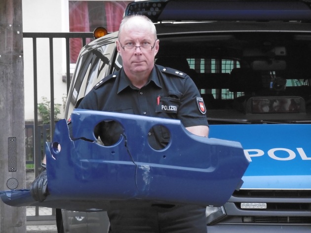 Bei der Unfallaufnahme stellten die Beamten ein circa 80 x 82 x 40 Zentimeter großes, blaues Kunststoffteil eines Stoßfängers sicher, welches von einem Lastwagen des Herstellers SCANIA mit neuerem Baujahr stammen dürfte.