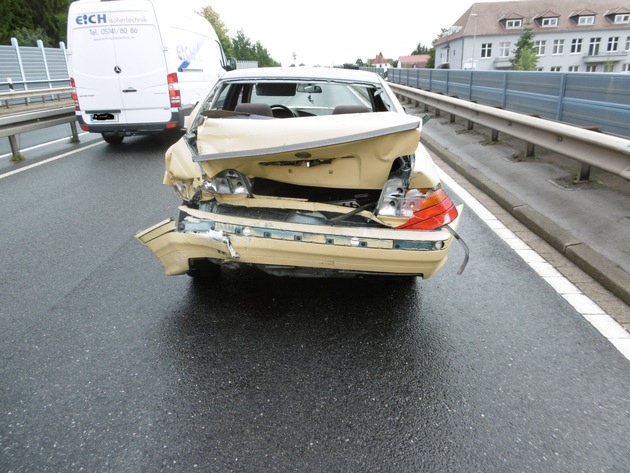 B243 - (NEI)Am Freitagmittag ereignete sich ein schwerer Verkehrsunfall auf der B243. Ein 18 jähriger Fahranfänger geriet augfgrund nicht angepasster Geschwindigkeit auf regennasser Fahrbahn beim Durchfahren einer Kurve ins Schleudern und fuhr hierdruch gegen die Mittelleitplanke. Hiernach drehte sich der PKW auf der Fahrbahn und wurde von einem nachfolgenden LKW erfasst. Der Unfallverursacher wurde durch den Unfall leicht verletzt. LKW als auch PKW wurden stark beschädigt.