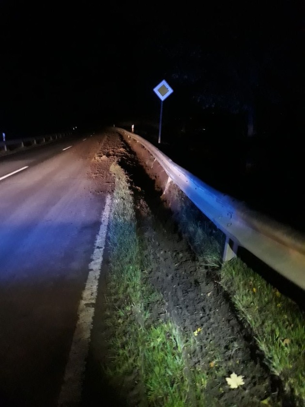 Einbeck -vo. Kreisstraße 503, Donnerstag, 02. November 2017, 03.00 Uhr. Ein zunächst unbekannter Lkw-Führer kommt auf der Kreisstraße 503 zwischen Reinserturm und Einbeck nach rechts von der Straße ab, beschädigt dadurch dreizehn Felder Leitplanke und die vorhandene Bankette. Des-weiteren wird wird durch das Abkommen die Fahrbahn erheblich verschmutzt. Durch polizeiliche Ermittlungen wird am Vormittag als Verursacher ein 52-jähriger Mann aus Einbeck als Fahrzeugführer einer Sattelzugmaschine mit Auflieger ermittelt. Die Schadenshöhe wird zur Zeit mit ca. 11.000,- Euro angegeben.