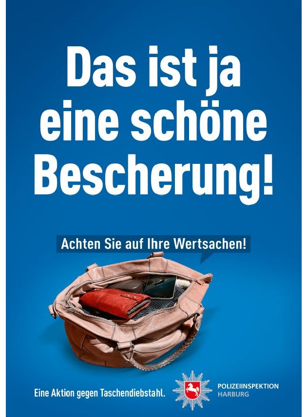 Alle Jahre wieder nutzen Taschen- und Trickdiebe die Vorweihnachtszeit verstärkt für ihre kriminellen Aktivitäten. Aus diesem Anlass warnt die Polizeiinspektion Harburg die Bürgerinnen und Bürger sowie Gewerbetreibende vor einer steigenden Zahl an Diebstahlsdelikten.
