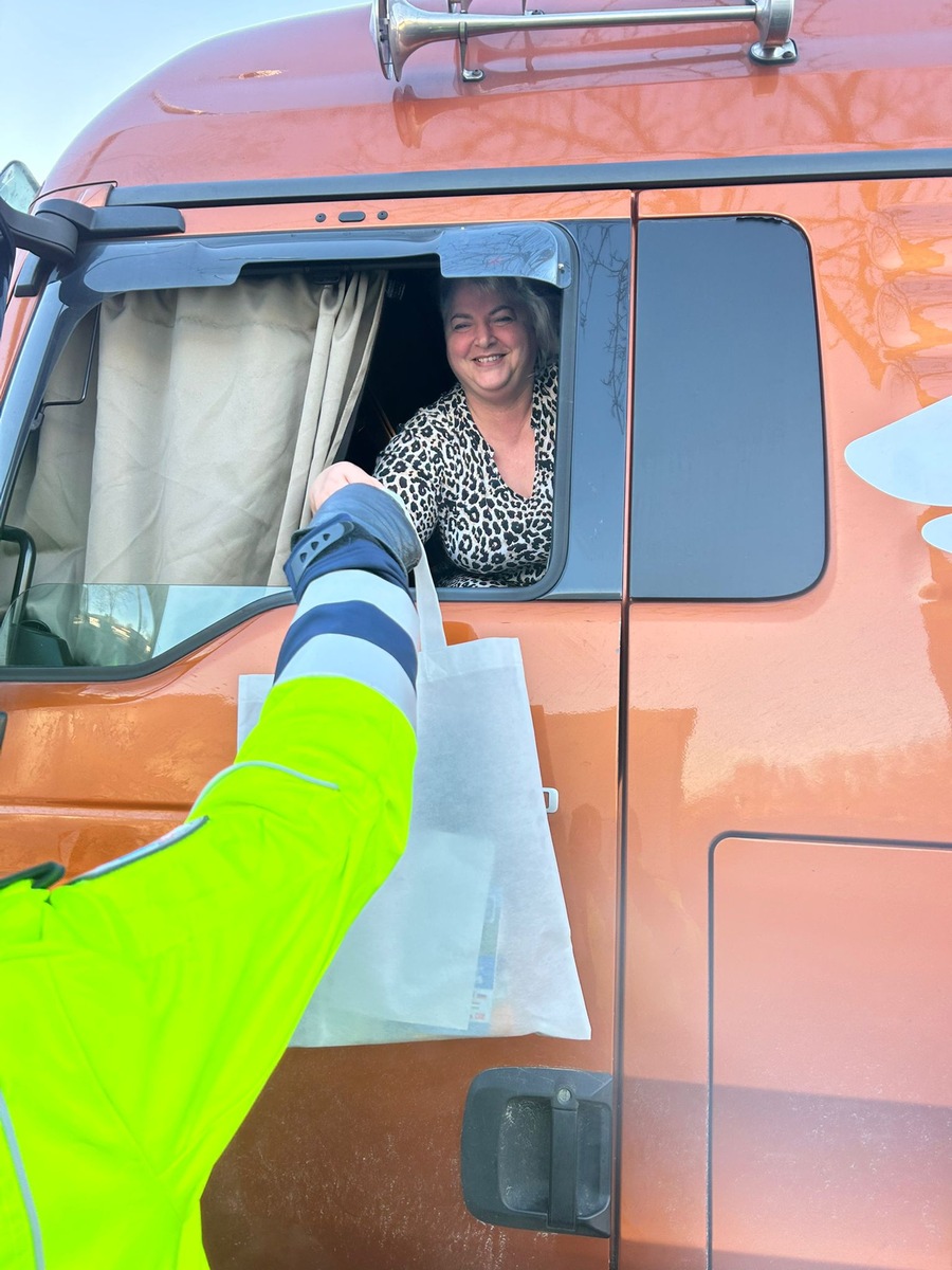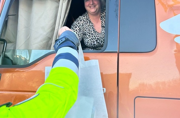 Beim Anklopfen an die Fahrerkabinen blickten die Beamtinnen und Beamten zunächst in erstaunte Gesichter. Der erste Gedanke war bei manchem Fahrer: "Nicht schon wieder eine Kontrolle." Doch schnell wich die Skepsis, als freundliche Worte gewechselt und kleine Geschenktüten überreicht wurden. Die Reaktionen reichten von ehrlicher Freude bis hin zu sichtbarer Rührung - auch die eine oder andere Träne blieb nicht aus.