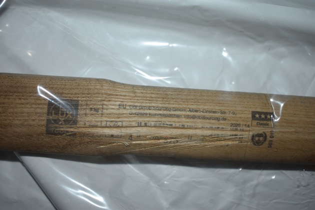 Wie berichtet, war es am 18.03.2026 zu einem Einbruch in ein Reihenhaus an der Straße Am Hang gekommen, bei dem die Täter bereits herausgeschafftes Diebesgut und Werkzeug im Garten zurückgelassen hatten. Darunter befanden sich ein 80 cm langer Vorschlaghammer der Marke Lux Tools, Hammerkopf 18 cm, sowie ein roter Spaltkeil.