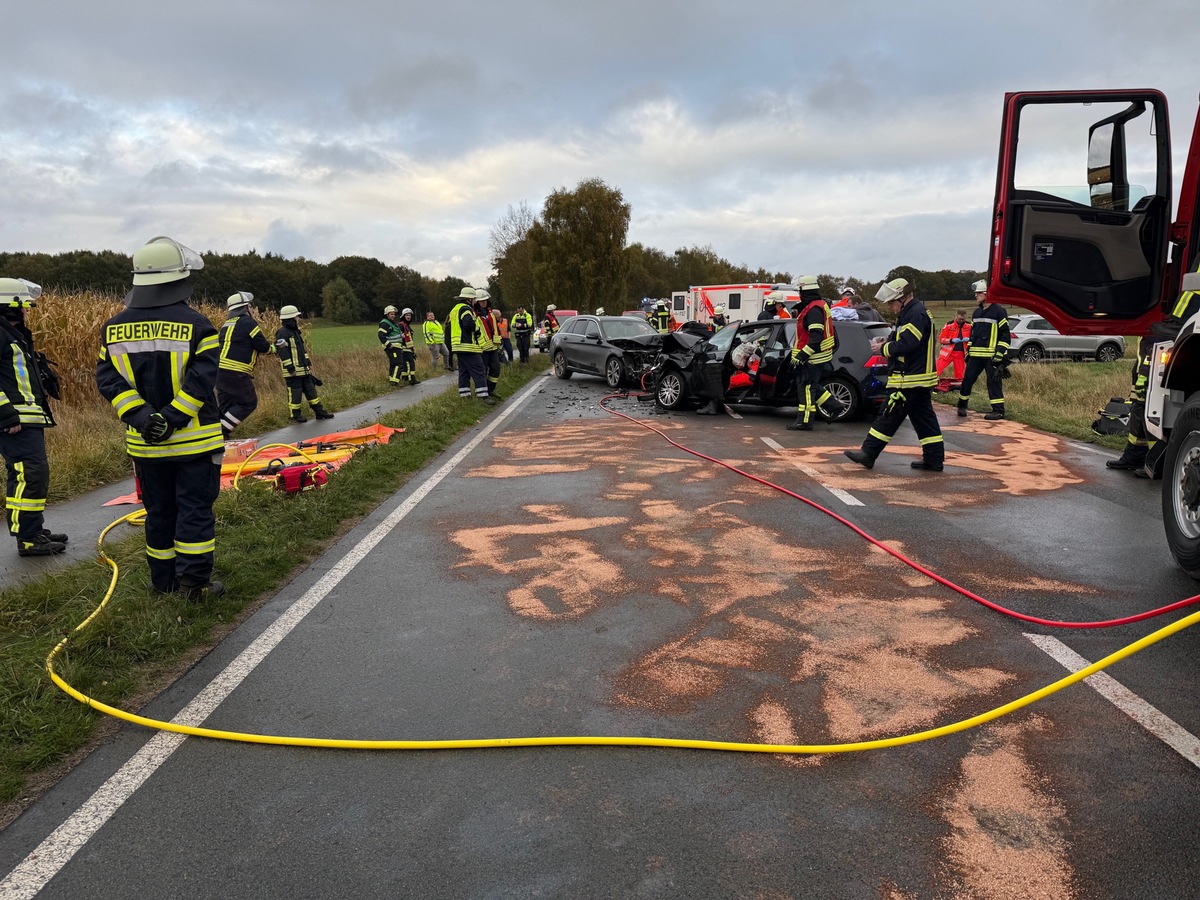 Groß Meckelsen. Am Mittwochnachmittag, den 15.10.2025, kam es gegen 16:45 Uhr auf der Landesstraße 142 zwischen Groß Meckelsen und Sittensen zu einem schweren Verkehrsunfall mit drei beteiligten Fahrzeugen. Die Polizei sucht Zeugen.