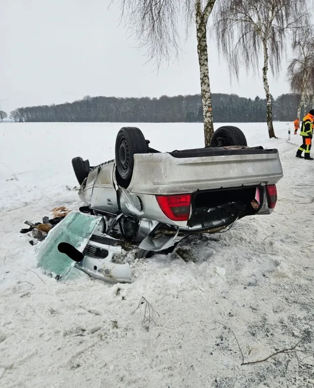Nach derzeitigem Stand befuhr eine 18-jährige Fahranfängerin aus dem Landkreis Verden mit ihrem Opel die K 233, als sie in einer Linkskurve ins Schleudern geriet und nach rechts von der Fahrbahn abkam. Im Seitenraum kollidierte der Pkw mit zwei Straßenbäumen und überschlug sich mehrfach. Das Fahrzeug kam schließlich auf dem Dach zum Stillstand.