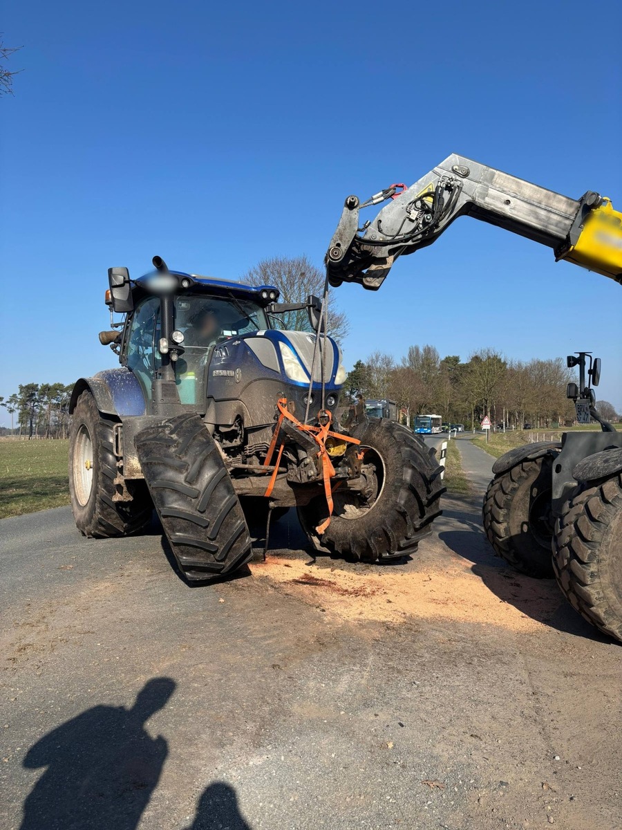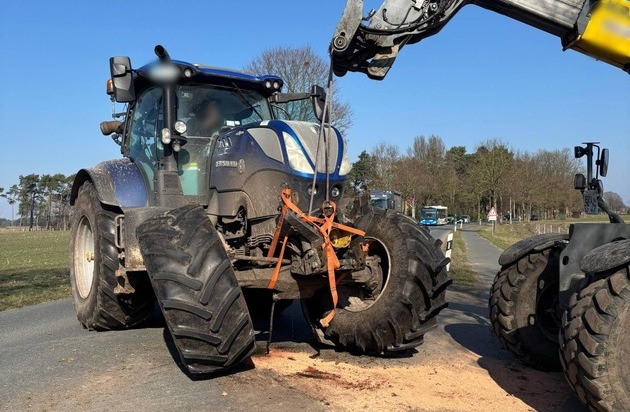 Ein 20-Jähriger befuhr mit einer landwirtschaftlichen Zugmaschine und Güllefass die Straße in Richtung Gnarrenburg und wollte auf eine Hofeinfahrt abbiegen. Hinter dem Gespann warteten mehrere Fahrzeuge den angezeigten Abbiegevorgang ab.