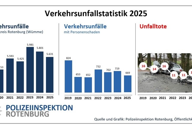 POL-ROW: ++ Verkehrsunfallstatistik 2025 für den Landkreis Rotenburg (Wümme) ++
