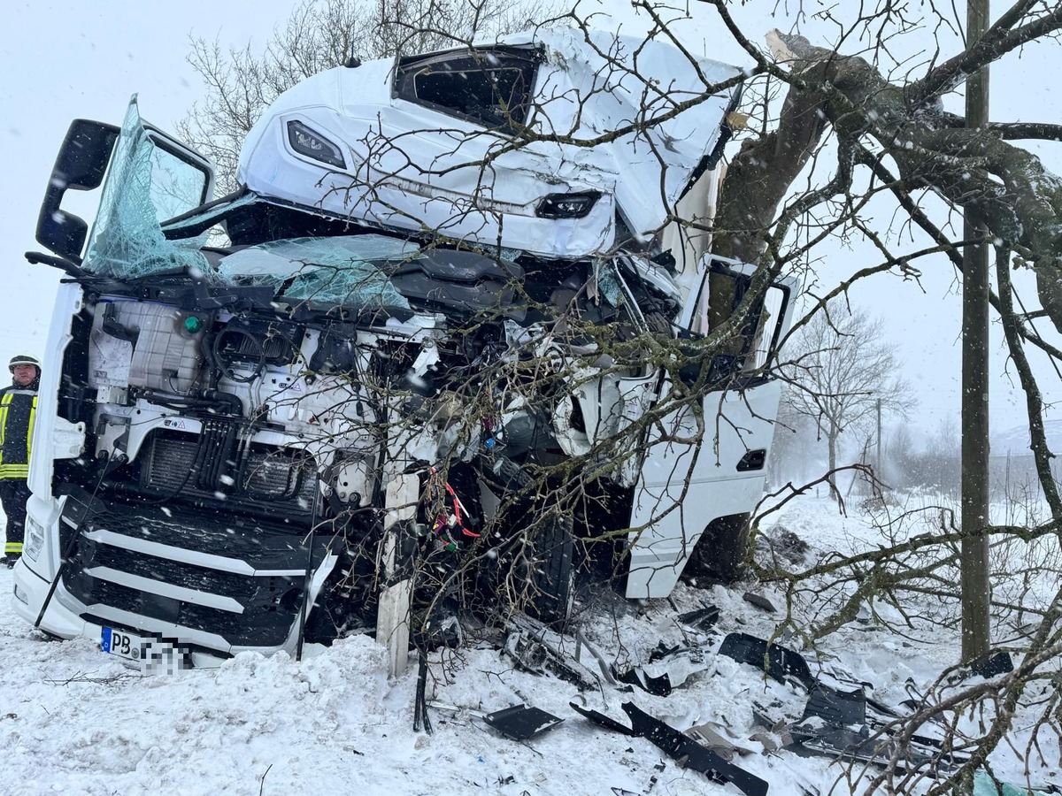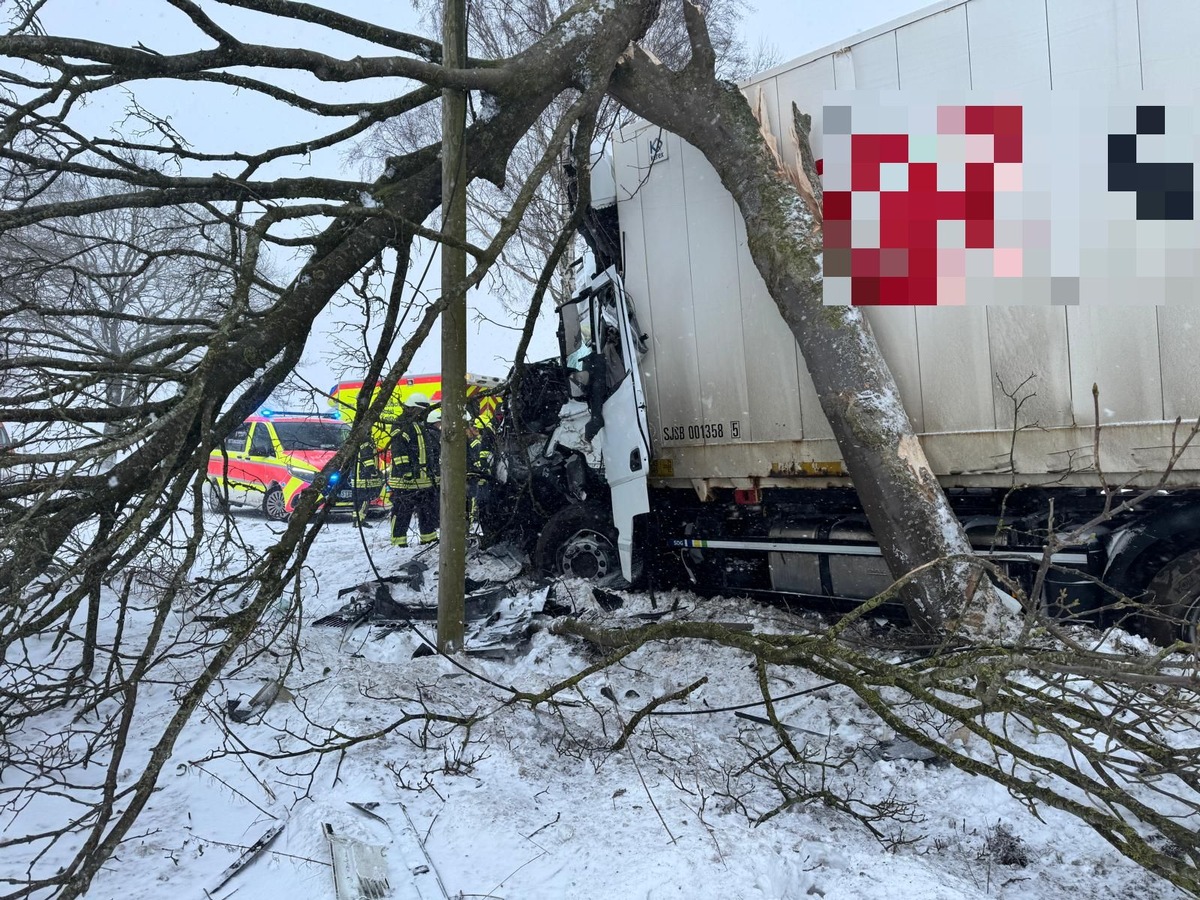 1. LKW-Fahrer kommt von der Straße ab und prallt gegen einen Baum - Fahrer mit schweren Verletzungen ins Krankenhaus