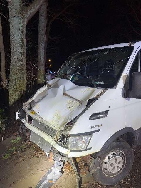Vermutlich aus Unachtsamkeit fuhr er dann auf den vor ihm fahrenden Mercedes-LKW eines 55-jährigen Fahrers aus Hamburg auf. Durch den Aufprall kam der IVECO nach rechts von der Fahrbahn ab und prallte im Seitenraum gegen einen Straßenbaum.