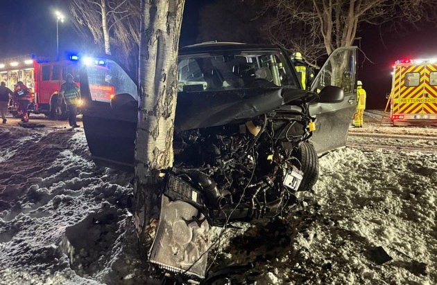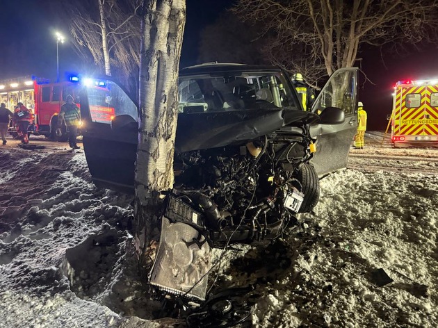 Zu der Zeit befuhr ein 21-jähriger Fahrer eines VW-Lupo aus Freiburg die K27 in Fahrtrichtung Stade. Vermutlich beim Durchfahren von Schneeverwehungen kam der Lupofahrer dann in Schleudern und geriet in den Gegenverkehr. Dort prallte er frontal mit dem entgegenkommenden VW-Bus eines 22-jährigen Fahrers ebenfalls aus Freiburg zusammen. Durch diesen Zusammenstoß wird der Lupo in den Seitenstreifen und der VW-Bus gegen einen, sich in der Nähe befindlichen Baum, geschleudert.