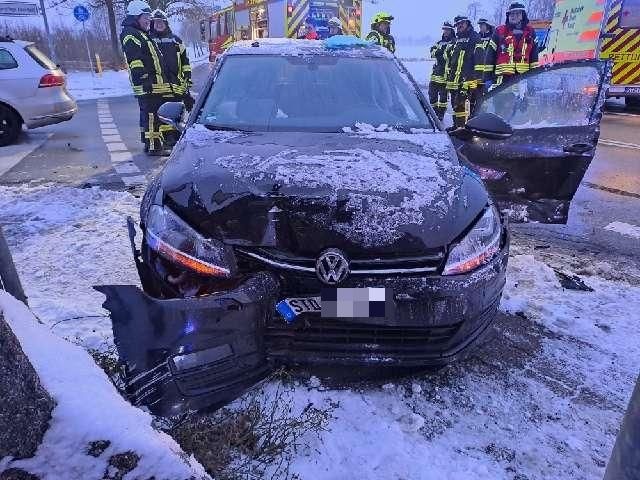 Beide Fahrzeuge stießen im Kreuzungsbereich zusammen und wurden erheblich beschädigt.