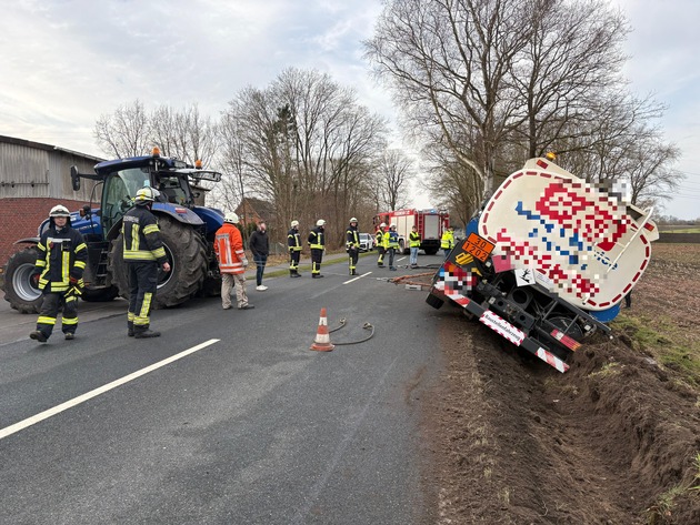 POL-STD: Tankwagen gerät in den Seitenraum - Straße in Mulsum wegen Bergungsarbeiten mit in die späten Nachmittagsstunden gesperrt