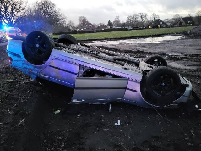 Zu der Zeit war der 18-jährige Fahrer eines 3er BMW aus Stade mit seinem Fahrzeug offenbar mit nicht angepasster Geschwindigkeit von Hagen kommend in Richtung Landesstraße 124 unterwegs. Aufgrund mehrerer Fahrbahnverengungen musste er dabei Slalom fahren, verlor die Kontrolle über sein Auto un kam nach rechts von der Fahrbahn ab. Dort kollidierte er zunächst mit zwei Straßenschildern, übersteuerte das Auto nach links, kam dort erneut von der Fahrbahn ab und überschlug sich.
