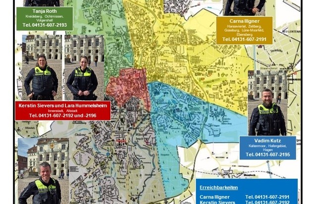 POL-LG: ++ Team der Lüneburger KontaktbeamtInnen komplettiert und aufgewachsen - Sextett nun in Lüneburg persönlich präsent und ansprechbar" ++