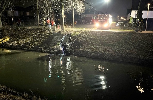 Die Zeugin blieb unverletzt, die Autofahrerin wurde mit einer leichten Unterkühlung in ein Krankenhaus gebracht. Der VW wurde durch die Feuerwehr Lüdinghausen aus der Stever geborgen und anschließend abgeschleppt.
