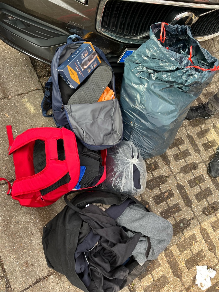 Zudem entdeckten die Polizisten zahlreiche Kleidungsstücke mit Verkaufsetiketten sowie Kosmetika, für die beide Georgier keine Quittungen oder Eigentumsnachweise vorzeigen konnten. Die Polizisten stellten die Gegenstände sicher und untersagten die Weiterfahrt, da für das Auto keine Zulassung vorlag. Die Beiden Männer konnten nach den polizeilichen Maßnahmen gehen.