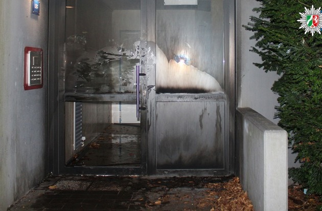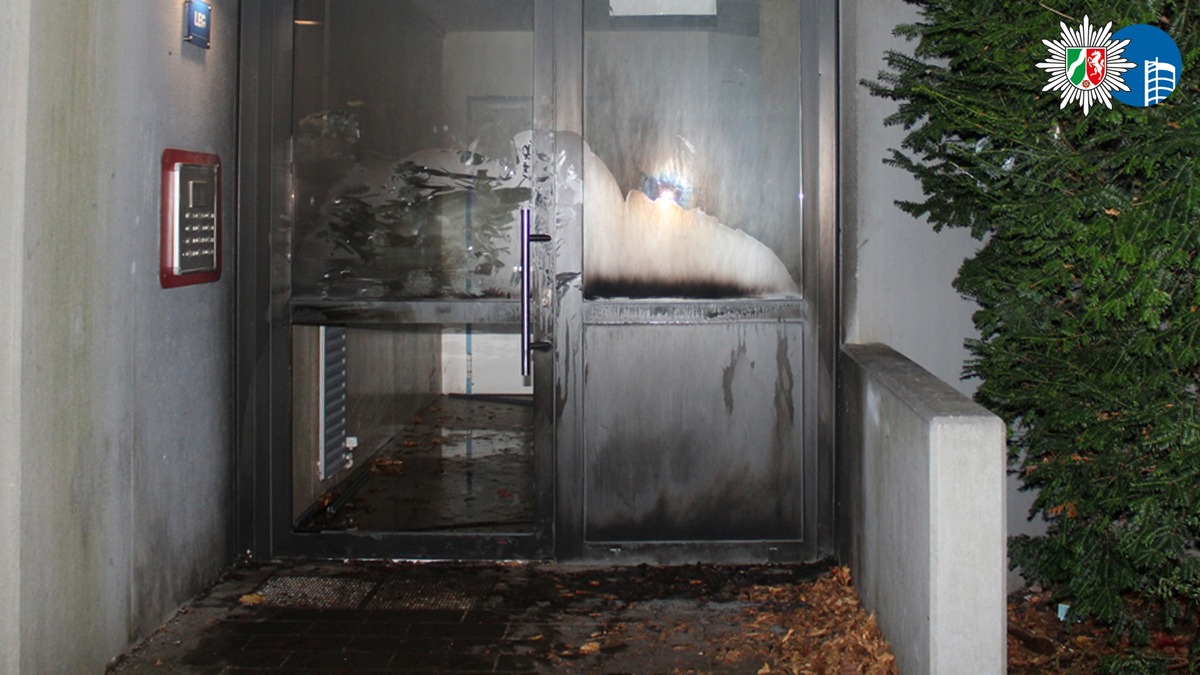 Mehrere Streifenwagenbesatzungen der Polizei Oberhausen wurden in der Nacht zu Samstag (01.11.), gegen 01:47 Uhr, zu einem Brand in die Bebelstraße alarmiert. Nach bisherigen Erkenntnissen verschütteten bislang unbekannte Personen - nach Zeugenaussagen möglicherweise bis zu zehn - im Eingangsbereich eines Mehrfamilienhauses eine brennbare Flüssigkeit (vermutlich Benzin) und zündeten diese an.