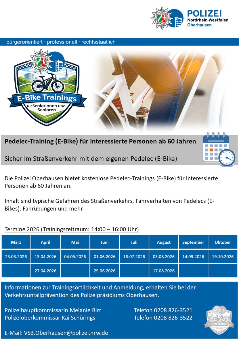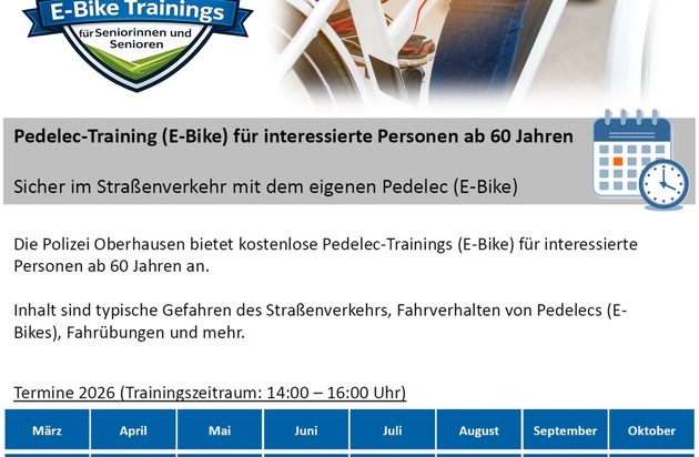POL-OB: Pedelec-Trainings der Polizei Oberhausen für Seniorinnen und Senioren