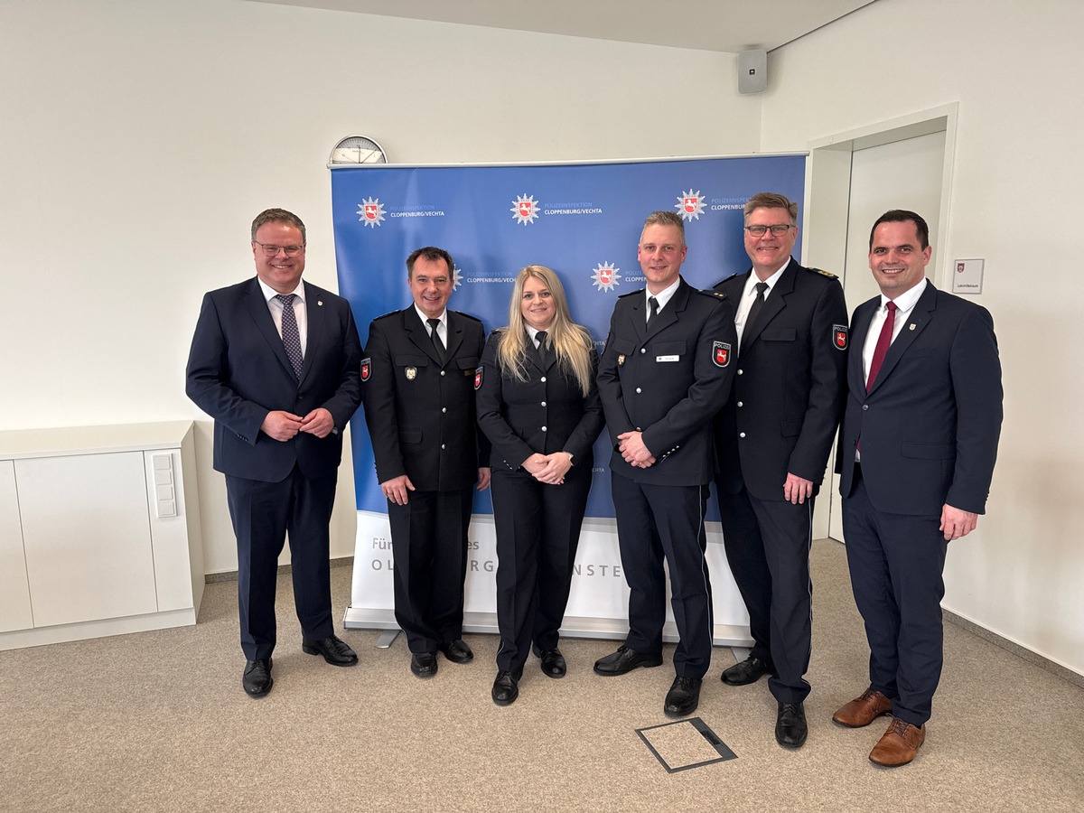 Neue Polizeichefin für Vechta: Der Präsident der Polizeidirektion Oldenburg, Andreas Sagehorn, hat am heutigen Donnerstag (12.02.26) Polizeirätin Luca-Marie Mielke in ihr neues Amt als Leiterin des Polizeikommissariats Vechta eingeführt. Die 32-Jährige folgt auf Polizeioberrat Lars Zengler, der das PK Vechta seit zweieinhalb Jahren geleitet hatte und fortan als Leiter des Zentralen Kriminaldienstes (ZKD) in der Polizeiinspektion (PI) Cloppenburg/Vechta fungieren wird.