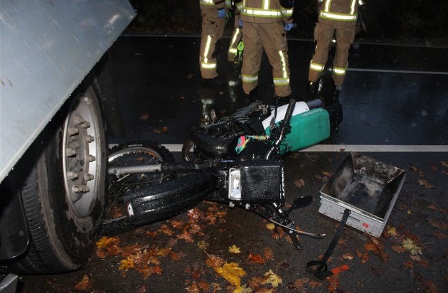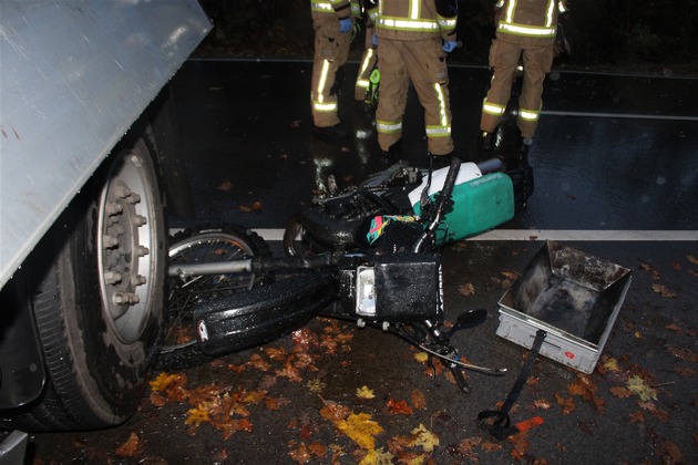 POL-RBK: Wermelskirchen - Zusammenstoß zwischen Leichtkraftrad und Unimog - Rettungshubschrauber im Einsatz