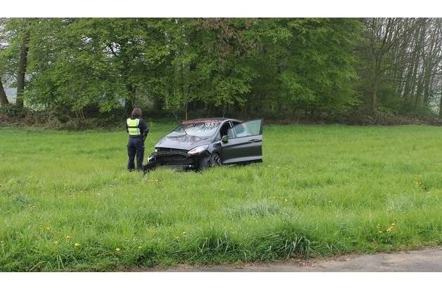 Eine Pkw-Fahrerin befuhr gegen 09:50 Uhr die Hofferhofer Straße in Fahrtrichtung Hoffnungsthal. Hinter ihr befand sich ein Pkw der Marke Ford. Die Frau gab später an, dass ihr der Fahrer des Ford dicht aufgefahren sei und gedrängelt habe. Nach ihren Angaben fuhr sie mit erlaubten 70 Stundenkilometern. Kurz nach der Ortschaft Stöcken habe sie der Fahrer mit überhöhter Geschwindigkeit überholt. Danach habe sie ihn zunächst aus den Augen verloren. Kurze Zeit später sah sie den beschädigten Ford auf einer Wiese stehen. Zusammen mit einem weiteren Zeugen half die Frau dem Pkw-Fahrer und informierte den Rettungsdienst und die Polizei.