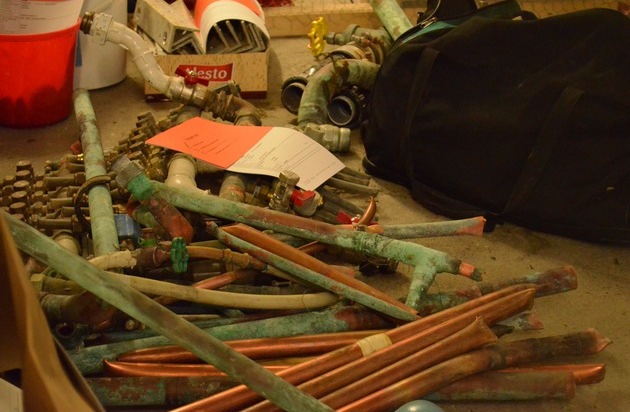 Sie beschlagnahmten ca. 150 kg Rohrmaterial sowie diverses Einbruchwerzeug.