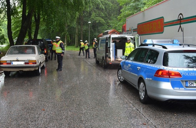 Nach ca. zweistündiger Kontrollzeit musste die Kontrolle auf Grund der Wetterlage (Dauerregen mit starken Windböen) abgebrochen werden. Die festgestellten Verstöße in der Kürze der Zeit zeigen aber, dass solche Kontrollen notwendig und berechtigt sind.