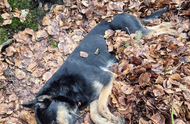 Im Nahbereich des Fundortes wurden frische Reifenspuren festgestellt, die darauf hindeuten, dass dort kurz zuvor ein Fahrzeug gewendet haben könnte. Möglicherweise wurde der Hund im Laufe des Tages im Wald vorsätzlich abgelegt.