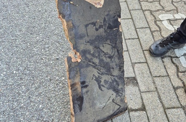 Nach derzeitigem Stand der Ermittlungen befuhr ein bislang unbekannter Fahrzeugführer mit einem LKW die B5 aus Richtung Vosskuhle kommend in Fahrtrichtung Husum. Während der Fahrt löste sich plötzlich eine Holzplatte von der Ladefläche des LKW und fiel auf die Fahrbahn.