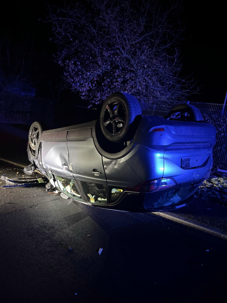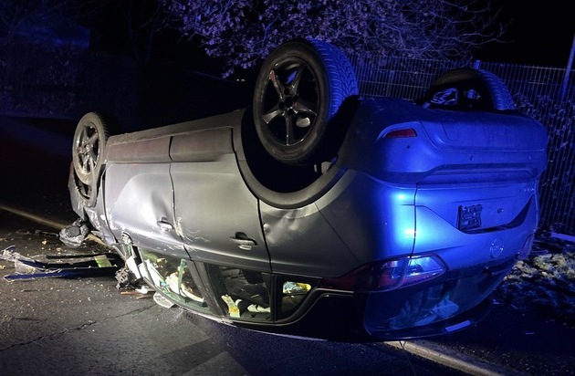 Am frühen Dienstagmorgen (20. Januar) meldete ein Zeuge gegen 4 Uhr ein auf dem Dach liegendes Auto in der Straße "Auf den Pühlen" in Wiehl-Bomig. Als die Polizisten dort eintrafen, fanden sie einen, auf dem Autodach liegenden, Opel Crossland vor. Personen waren nicht in der Nähe und an dem Auto befanden sich keine Kennzeichen. Ermittlungen führten die Polizei zu der Anschrift der Fahrzeughalterin, wo der 16-jährige Fahrer aus Wiehl, sowie zwei weitere Insassen, eine 15-jährige Wiehlerin und ein 18-Jähriger aus Gummersbach, angetroffen wurden. Weil der 16-Jährige unter dem Einfluss von Betäubungsmitteln stand, musste er die Beamten zur Polizeiwache begleiten, wo ihm eine Blutprobe entnommen werden sollte. Sowohl er, als auch der 15-jährige Mitfahrer verhielten sich gegenüber der Polizei unkooperativ und leisteten Widerstand. Auf der Polizeiwache verschlechterte sich der Gesundheitszustand des Wiehlers und er kam mit einem Krankenwagen ins Krankenhaus. Bei der Blutprobenentnahme im Krankenhaus leistete er erneut Widerstand. Die 15-Jährige erlitt bei dem Verkehrsunfall leichte Verletzungen. Das Auto wurde von der Polizei sichergestellt.