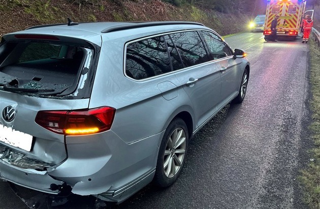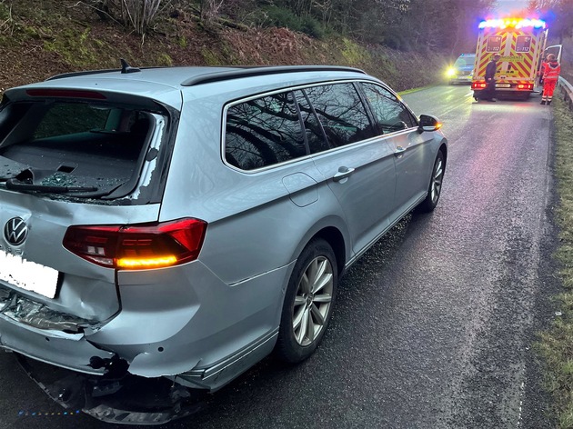 Gegen 7 Uhr am Montagmorgen (23. Februar) waren ein 40-jähriger Wipperfürther und ein 58-Jähriger aus Marienheide mit ihren Autos auf der Leppestraße (L97) von Untererlinghagen in Richtung Karlsthal unterwegs. Als eine Rotte Wildschweine die Fahrbahn querte, bremste der 58-Jährige seinen VW ab. In der Folge fuhr der 40-Jährige mit seinem Sprinter auf das Heck des Vorausfahrenden auf. Durch den Verkehrsunfall wurden die beiden Autofahrer leicht verletzt und von Rettungskräften in ein Krankenhaus gebracht. Die beteiligten Fahrzeuge waren nicht mehr fahrbereit und mussten abgeschleppt werden. Für die Dauer der Unfallaufnahme musste die Straße voll gesperrt werden. Ausgelaufene Betriebsstoffe wurden durch die Feuerwehr abgestreut.