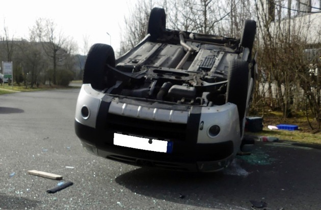 Am 6. März (Freitag) kam es in Gummersbach-Windhagen zu einem Verkehrsunfall, bei dem die vier Beteiligten leicht verletzt wurden. Ein 44-jähriger Autofahrer war gegen 13:50 Uhr mit seinen Kindern (6 und 9 Jahre) auf der Fraunhoferstraße unterwegs, als eine 43-Jährige aus Gummersbach mit ihrem Renault von einem Firmengelände auf die Fraunhoferstraße einfuhr. Der 44-jährige Nümbrechter versuchte, dem Renault auszuweichen, stieß jedoch mit dem Heck zusammen. Daraufhin geriet der Peugeot des 44-Jährigen ins Schlingern, überschlug sich und kam auf dem Fahrzeugdach zum Liegen. Die Gummersbacherin sowie der Nümbrechter und seine Kinder erlitten leichte Verletzungen und wurden durch Rettungskräfte in ein Krankenhaus gebracht. Die beteiligten Autos wurden abgeschleppt.