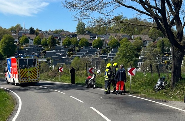 Am Sonntag (26. April, 13:50 Uhr) kam es auf der Uelfe-Wuppertal-Straße zwischen Radevormwald und Önkfeld zu einem Verkehrsunfall, an dem zwei Motorradfahrer beteiligt waren. Ein 23-jähriger Zweiradfahrer aus Lüdenscheid war aus Richtung Önkfeld in Fahrtrichtung Radevormwald unterwegs. In einer Rechtskurve stürzte der 23-Jährige mit seiner Honda zu Boden und rutschte in die entgegenkommende Suzuki eines 27-jährigen Wuppertalers. Der 23-Jährige wurde durch den Verkehrsunfall leicht, der 27-Jährige schwer verletzt. Rettungskräfte brachten sie in umliegende Krankenhäuser. Die Motorräder waren nicht mehr fahrbereit und mussten abgeschleppt werden.