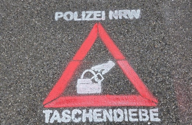 Im Rahmen der Beteiligung an der Durchführung einer bundesweiten Schwerpunktaktion, die bis zum 10. Oktober analog der Präventionskampagne gegen den Taschendiebstahl "Augen auf und Tasche zu" stattfindet, wurde am Montag (6. Oktober) durch Mitarbeiterinnen der Kriminalprävention / Opferschutz ein Aktionstag durchgeführt. In Absprache mit den Städten Heinsberg, Erkelenz, Hückelhoven und Geilenkirchen wurden öffentliche Plätze, wie zum Beispiel Marktplätze und Einkaufsstraßen aufgesucht, wo mit einer Sprühschablone zur Bekämpfung des Taschendiebstahls auf die Thematik hingewiesen wurde. Die dadurch erlangte Sichtbarkeit der Problematik erzielte bereits während der Sprühaktion viel Aufmerksamkeit durch interessierte Bürgerinnen und Bürger. In Gesprächen, die sich im Rahmen der Aktion ergaben, konnten die polizeilichen Kernbotschaften weiter vertieft werden. Interessierten wurde zudem zusätzliches Informationsmaterial ausgehändigt.