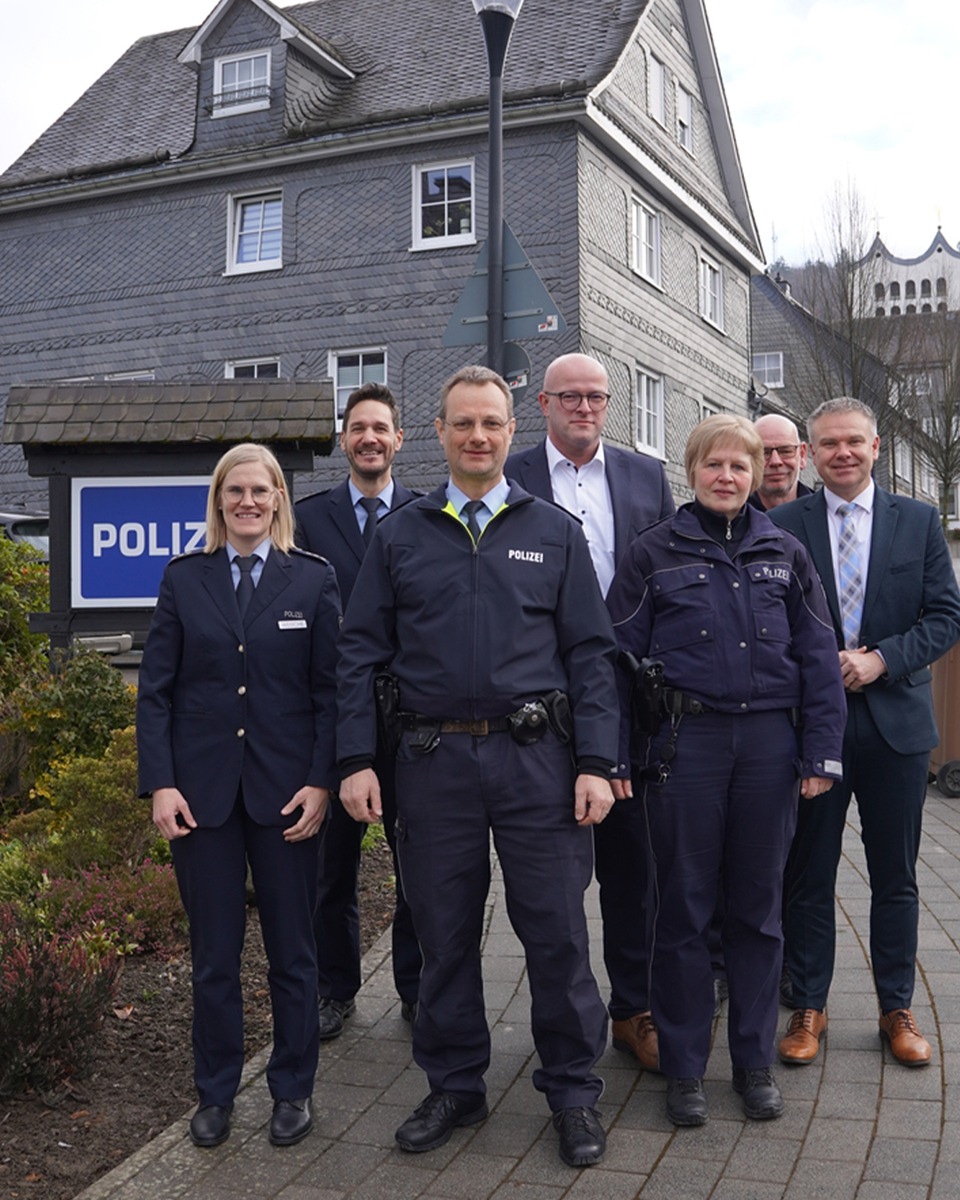 Die Polizeiwache Schmallenberg steht unter neuer Leitung: Polizeihauptkommissar Bernd Waldow hat im August 2025 die Funktion des Wachleiters übernommen. Landrat Thomas Grosche und der Abteilungsleiter der Polizei, Thomas Vogt, stellten ihn gemeinsam mit Bürgermeister Johannes Trippe sowie der Direktionsleiterin Gefahrenabwehr/Einsatz, Mareen Weische, der Öffentlichkeit vor. Mit Bernd Waldow übernimmt ein äußerst erfahrener Polizeibeamter die Führung der Wache. Der 51-jährige Polizeihauptkommissar ist seit dem 1. September 1994 im Dienst der Polizei des Landes Nordrhein-Westfalen. Nach seiner Ausbildung beim Polizeipräsidium Dortmund führte ihn sein beruflicher Weg 1997 zur Kreispolizeibehörde Hochsauerlandkreis. Dort war er unter anderem bei den Polizeiwachen in Arnsberg, Meschede und Brilon tätig und bekleidete über viele Jahre Führungsfunktionen, zuletzt als Leiter des Verkehrsdienstes sowie als Dienstgruppenleiter in Meschede. Bernd Waldow lebt in Meschede, ist verheiratet und mit den Strukturen und Herausforderungen des Hochsauerlandkreises bestens vertraut. Sein neuer Zuständigkeitsbereich umfasst ein Gebiet von über 300 Quadratkilometern mit knapp 26.000 Einwohnern. Landrat Thomas Grosche betont die besondere Rolle der Polizeiwachen im ländlichen Raum: "Gerade in einer Flächenregion wie dem Hochsauerlandkreis sind die Polizeiwachen wichtige Anlaufstellen für die Bürgerinnen und Bürger. Sie stehen für Präsenz, Erreichbarkeit und Vertrauen. Die Menschen erwarten hier nicht nur schnelle Hilfe, sondern auch persönliche Ansprechpartner, die die regionalen Besonderheiten kennen." Als Wachleiter der Polizeiwache Schmallenberg trägt Bernd Waldow die Verantwortung für die Organisation und Führung des Wachdienstes sowie für die Koordination der polizeilichen Aufgaben im Wachbereich. Dazu zählen neben der Gewährleistung der öffentlichen Sicherheit und Ordnung auch die enge Zusammenarbeit mit den Kommunen, der Feuerwehr, Rettungsdiensten sowie weiteren Netzwerkpartnern. Ein weiterer Schwerpunkt liegt in der Personalführung und -entwicklung sowie in der bürgernahen Polizeiarbeit. Abteilungsleiter Polizei Thomas Vogt hebt hervor: "Mit Bernd Waldow gewinnen wir in Schmallenberg eine erfahrene und engagierte Führungskraft: Er kennt sowohl den operativen Polizeialltag als auch strategische Führungsaufgaben aus langjähriger Praxis. Er steht für Kontinuität, Professionalität und eine starke Verankerung in der Region."