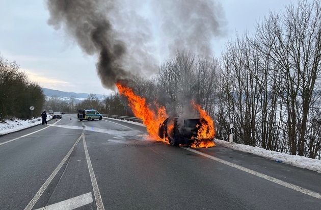 Zum Brand eines PKW kam es am Samstag, 31.01.2026, auf der L837 nahe dem Warburger Ortsteil Welda.
