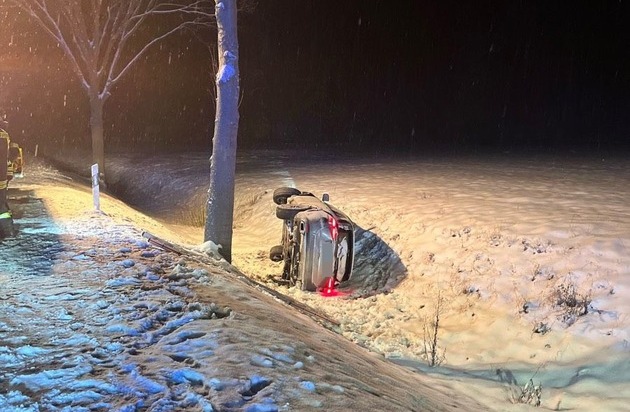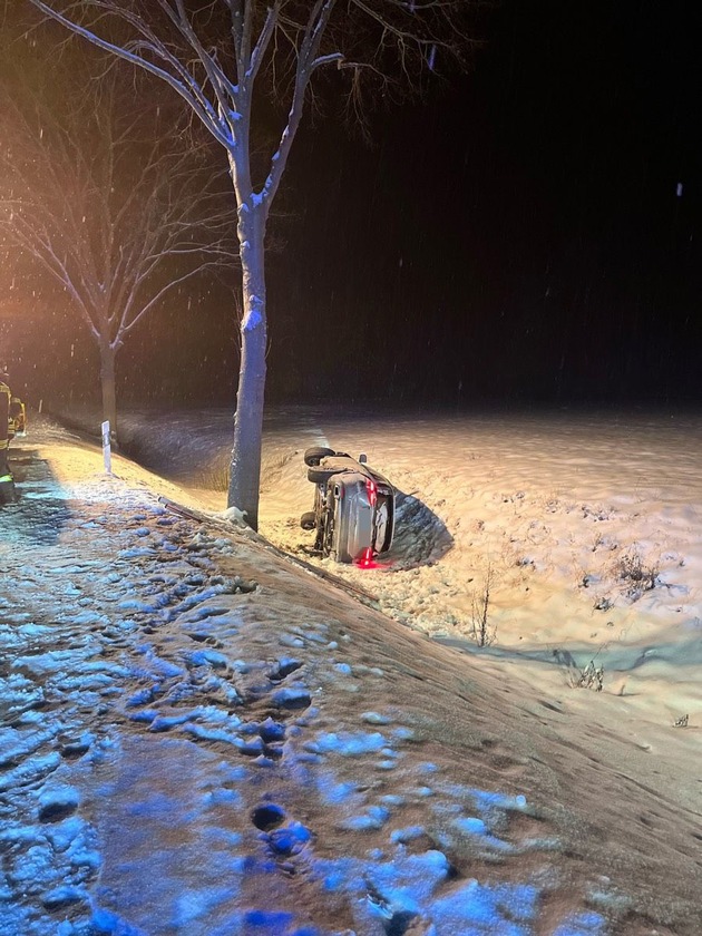 Bei einem weiteren Verkehrsunfall auf der B252 in Höhe Brakel-Gehrden kam eine 48-jährige Fahrerin aus Schwäbisch Gmünd in den Abendstunden mit ihrem Mercedes-Benz von der Straße ab, kollidierte mit einem Baum und kam auf der Seite liegend zum Stillstand. Die Fahrerin blieb glücklicherweise unverletzt. Das Fahrzeug war nicht mehr fahrbereit und wurde mithilfe eines Krans geborgen. Die Polizei weist erneut darauf hin, die Fahrweise den witterungs- und Straßenverhältnissen anzupassen./rek
