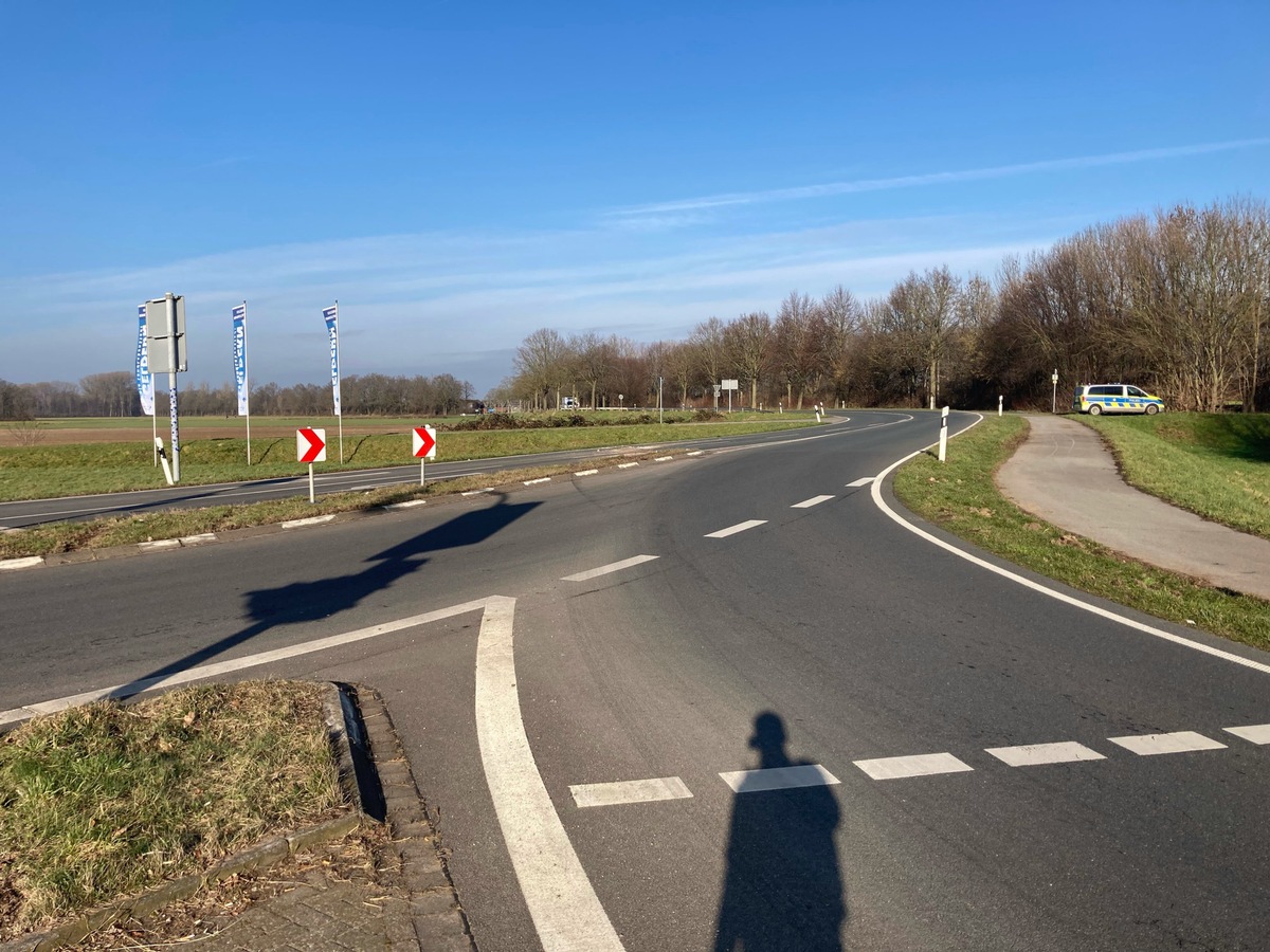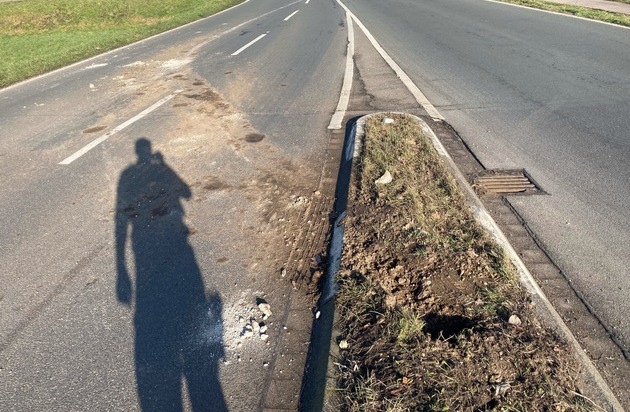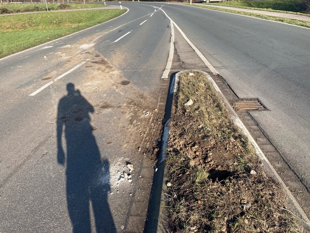 Am Samstag (24.01.2026) gegen 13:53 Uhr wurde der Polizei eine Unfallflucht in Geldern an der Kreuzung Kölner Straße (B 9)/Krefelder Straße (Landstraße 478)/Deselaersweg gemeldet. Dort wurde ein Verkehrszeichen "Rechts vorbei" durch ein bisher unbekanntes Fahrzeug beschädigt. Aufgrund der Spurenlage vor Ort ist davon auszugehen, dass das unbekannte Fahrzeug von der B9 kommend in die Krefelder Straße abgebogen ist. Aus bisher unbekannten Gründen geriet das Fahrzeug im Einmündungsbereich nach links von der Fahrbahn ab und touchierte das Verkehrszeichen "Rechts vorbei", welches auf der Mittelinsel für den Verkehr aus Richtung Geldern aufgestellt war. Das Verkehrszeichen wurde dabei mit dem Betonfundament herausgerissen und dann vermutlich unter dem Fahrzeug zunächst über die Gegenfahrbahn und dann in einem Bogen nach rechts etwa 50 Meter mitgeschleift. Das unbekannte Fahrzeug hat dann vermutlich am rechten Fahrbahnrand der Krefelder Straße angehalten. Der Fahrzeugführer oder die Fahrzeugführerin dürfte dann das Verkehrszeichen vom Fahrzeug gelöst haben und es in den Grünstreifen geworfen haben. Dort wurde es durch die Polizeibeamten aufgefunden. Aufgrund der noch auf der Fahrbahn vorhandenen Schleif- und Dreckspuren kann angenommen werden, dass sich der Unfall zeitnah vor der Meldezeit zugetragen haben muss, da offensichtlich noch nicht allzu viele Fahrzeuge über die Spuren gefahren sind. Das Verkehrskommissariat der Polizei in Geldern sucht jetzt Zeugen, die sachdienliche Angaben zu dem Verkehrsunfall bzw. dem verursachenden Fahrzeug machen können. Verkehrsteilnehmer, die nähere Angaben zur Unfallzeit machen können, weil sie die Beschädigungen beispielsweise schon vor der Meldezeit (s.o.) festgestellt haben, werden ebenfalls gebeten, sich zu melden. Hinweise bitte unter Telefon 02831 1250. (sp)