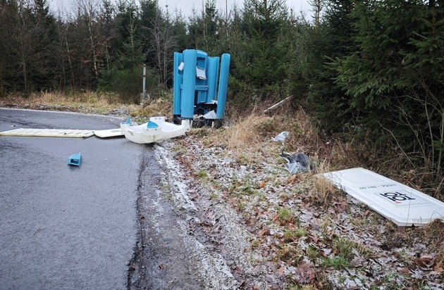 Am Neujahrsmorgen wurde um 8.20 Uhr eine demolierte Baustellentoilette nahe des Berufskollegs in Ostendorf vorgefunden. Offenbar wurde diese, mutmaßlich durch Knallkörper, vollkommen deformiert. Wer Hinweise zur Sache geben kann wird gebeten, die Polizei in Halver unter der 0235391990 in Kenntnis zu setzen. (lubo)