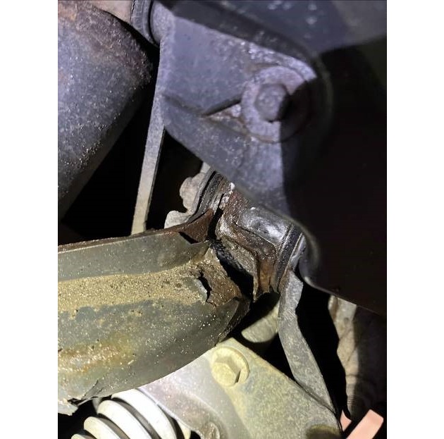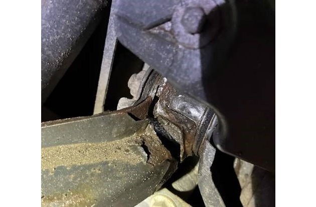Die zuvor festgestellten Mängel bestätigten sich vollumfänglich. Es wurden teilweise schwerste technische Mängel festgestellt. Einer der Mängel veranlasste selbst die erfahrenen Prüfingenieure zu einer Zusammenkunft an der Lenkung. Hier zeigte sich ein fast vollständig gebrochener Querlenker (Foto). Das Urteil der Fachleute: ein kapitaler Schaden stand unmittelbar bevor, der das Wegknicken des rechten Vorderrades zur Folge gehabt hätte. Auch die komplette Bremsanlage des Anhängers erwies sich als funktionslos.
