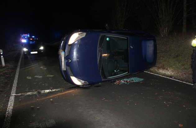 Ausgangs einer Rechtskurve verlor der Mann aufgrund Fahrbahnglätte die Kontrolle über seinen Wagen. Er kam anschließend nach links von der Fahrbahn ab und fuhr in den steilen Böschungsbereich. Hier kippte der Renault auf die Fahrerseite und rutschte noch mehrere Meter auf der Fahrbahn weiter. Der 41-Jährige konnte sich selbständig aus dem Auto befreien, musste aber anschließend verletzt mit dem Rettungswagen in ein Krankenhaus gebracht werden. Der Sachschaden dürfte bei mindestens 5.000 Euro liegen. Der Renault musste in der Folge durch ein Abschleppunternehmen abtransportiert werden. Die Unfallaufnahme vor Ort ergab, dass der Wagen mit intakten Winterreifen ausgerüstet war. Das Verkehrskommissariat hat die weitere Sachbearbeitung übernommen.